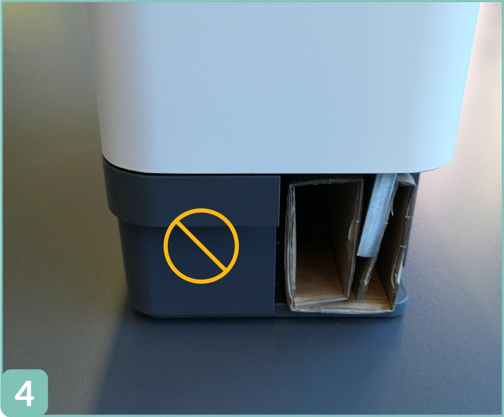 Insert the soilkind into the pulp tray. Due to its weight and size, we recommend using two people to insert the soilkind. You can grasp the soilkind by the tank opening and the power plug recess.