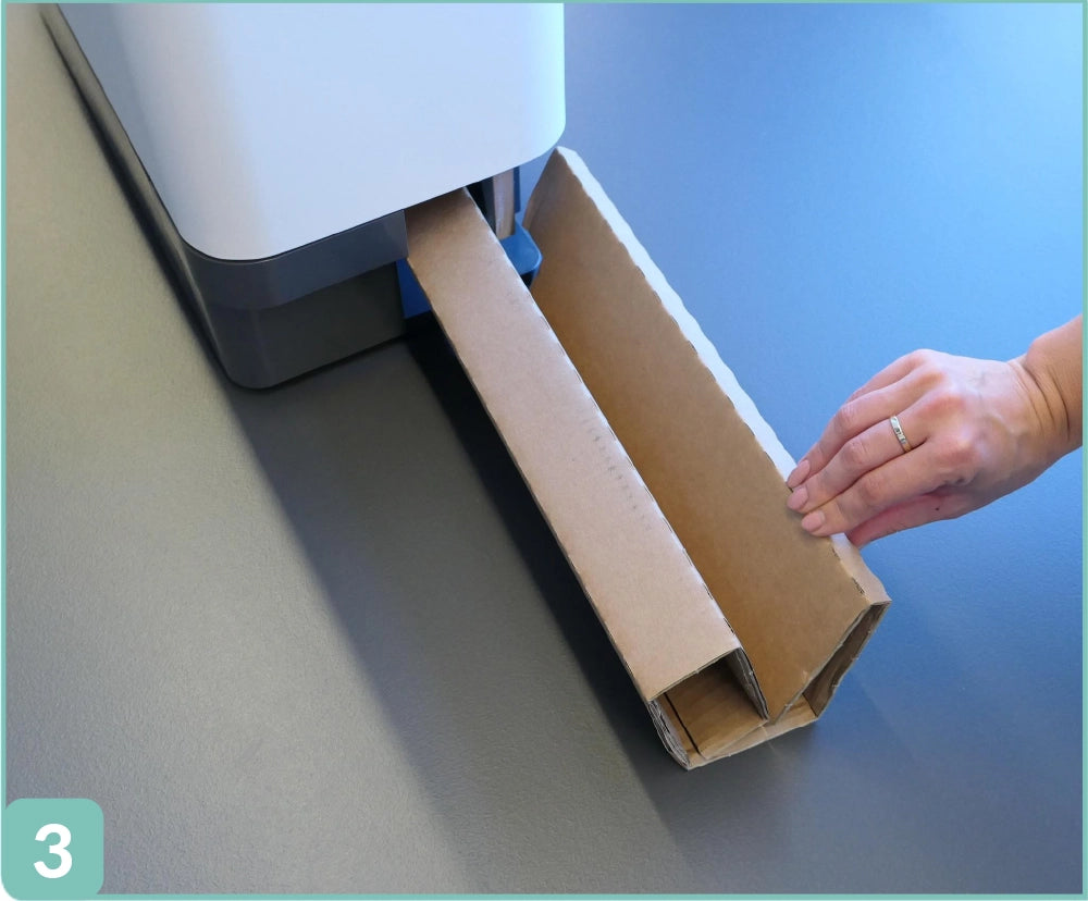 Place the film protector (D) over the pulp insert. Use one of the large film protector cutouts here.