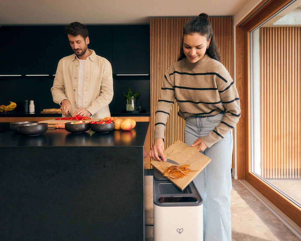 No annoying carrying out, no typical organic waste odor, and no unwanted insects. Open the lid, throw in your organic waste, and, once enough organic waste has been collected, use real compost within 48 hours. Thanks to the integrated activated carbon filter, soilkind is significantly more odor-friendly than your conventional organic waste container. -