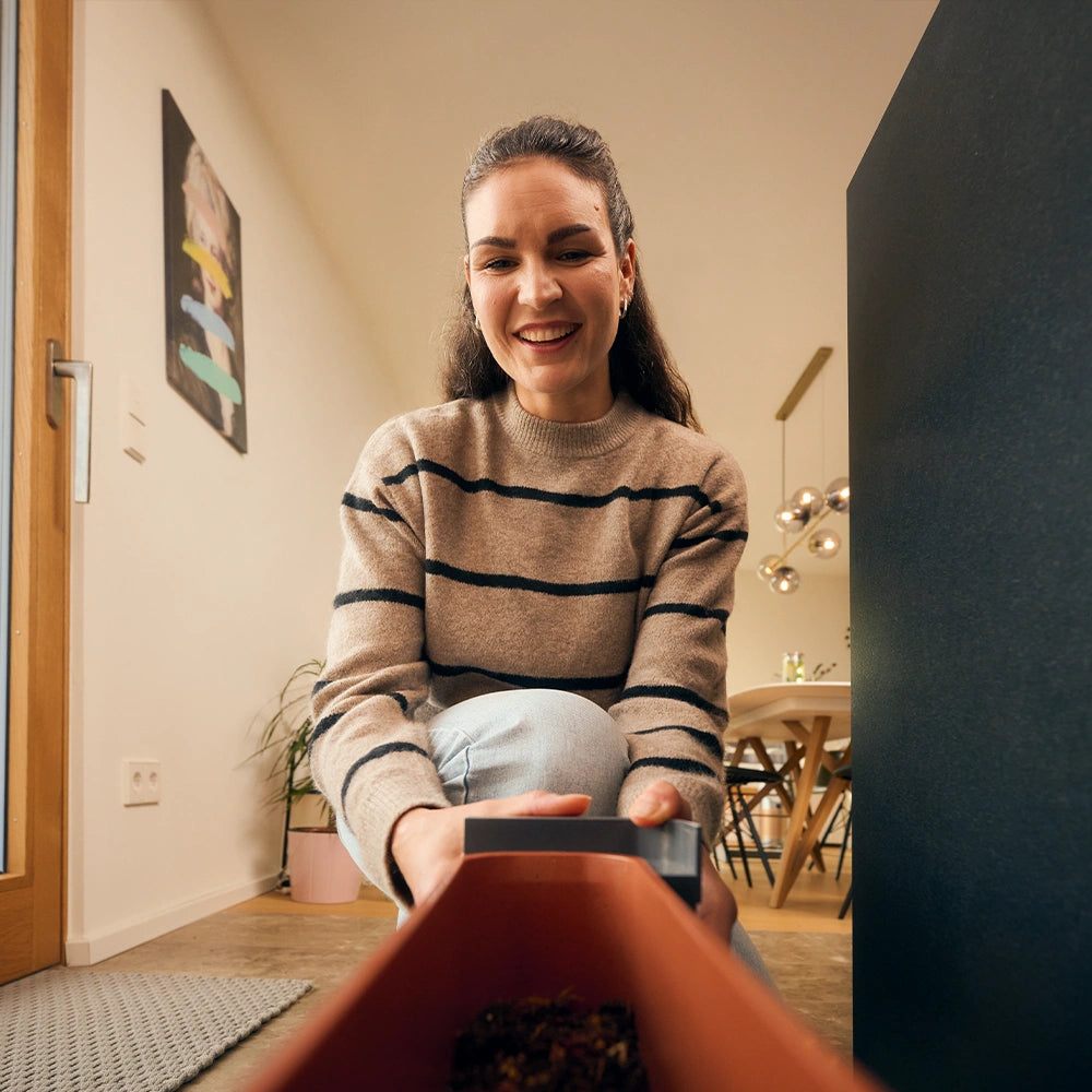 Water is not only a valuable resource for the earth – it's also an essential part of natural and high-quality composting. That's why we've implemented intelligent moisture regulation technology in soilkind. In preparation for composting, soilkind extracts excess water from the waste and efficiently recycles it with the help of a condenser in a closed loop. The app notifies you when you need to refill or remove water. Good to know: You can simply drain excess water from the tank and use it for your plants. The water contains important nutrients and is a real booster for your green friends. -